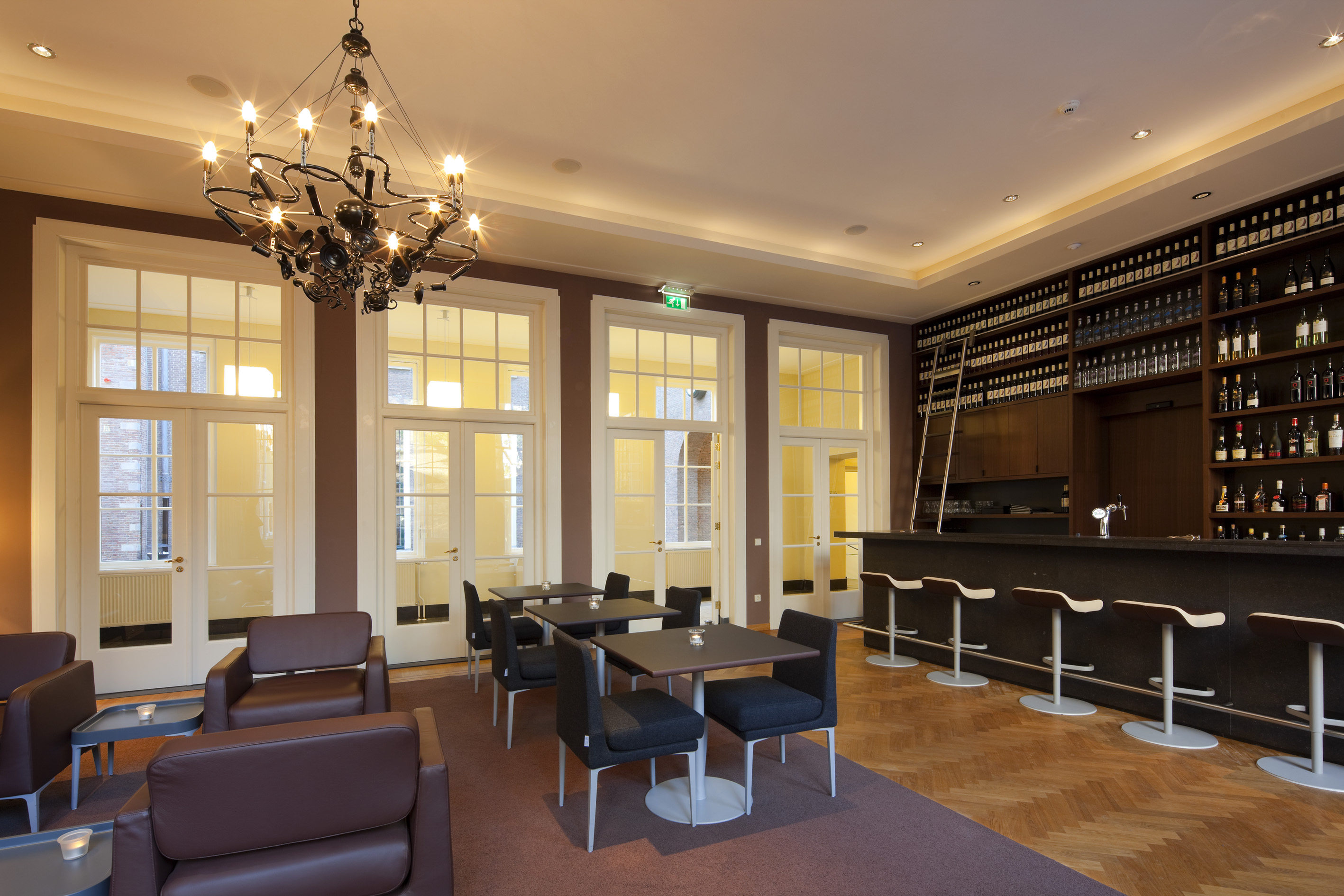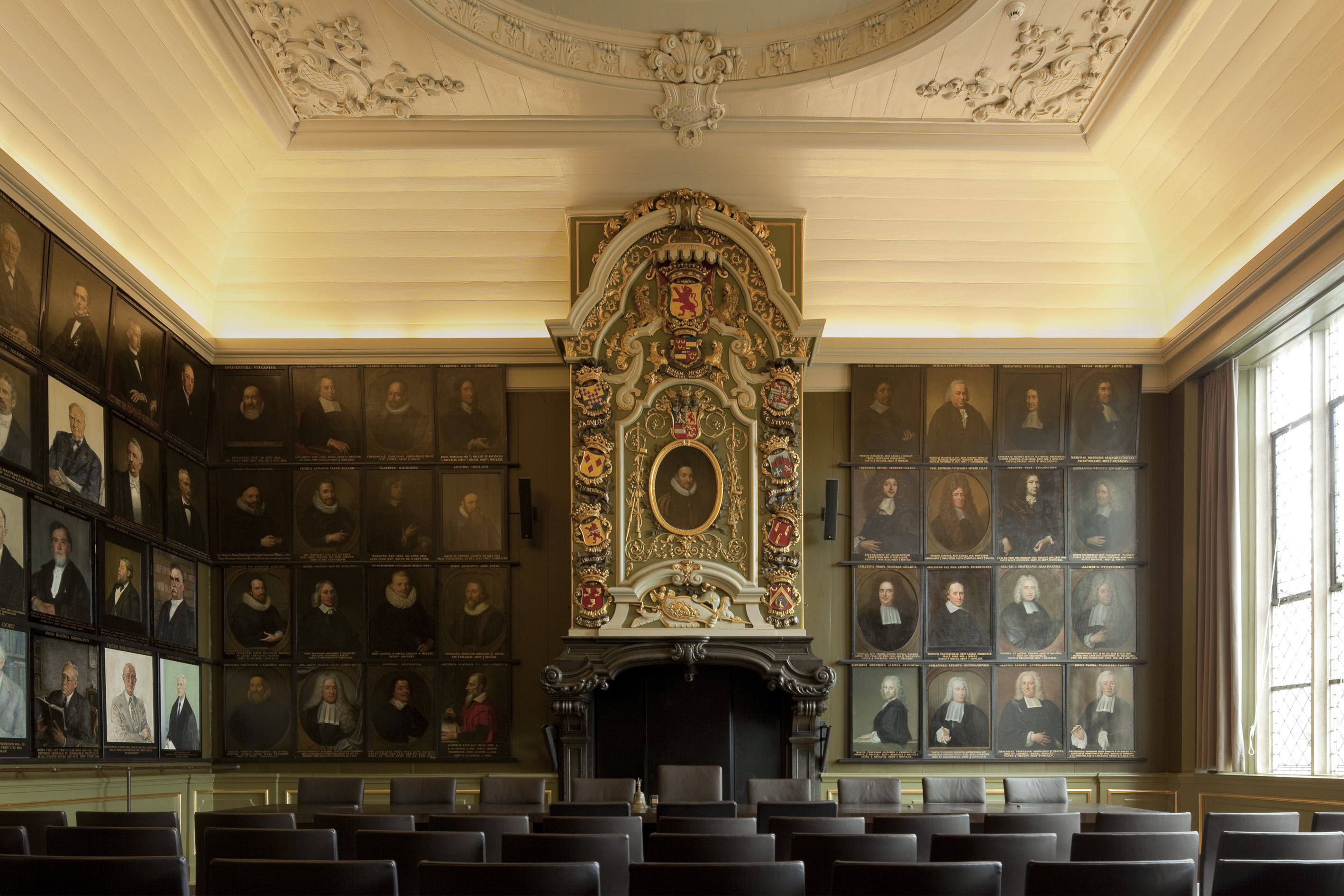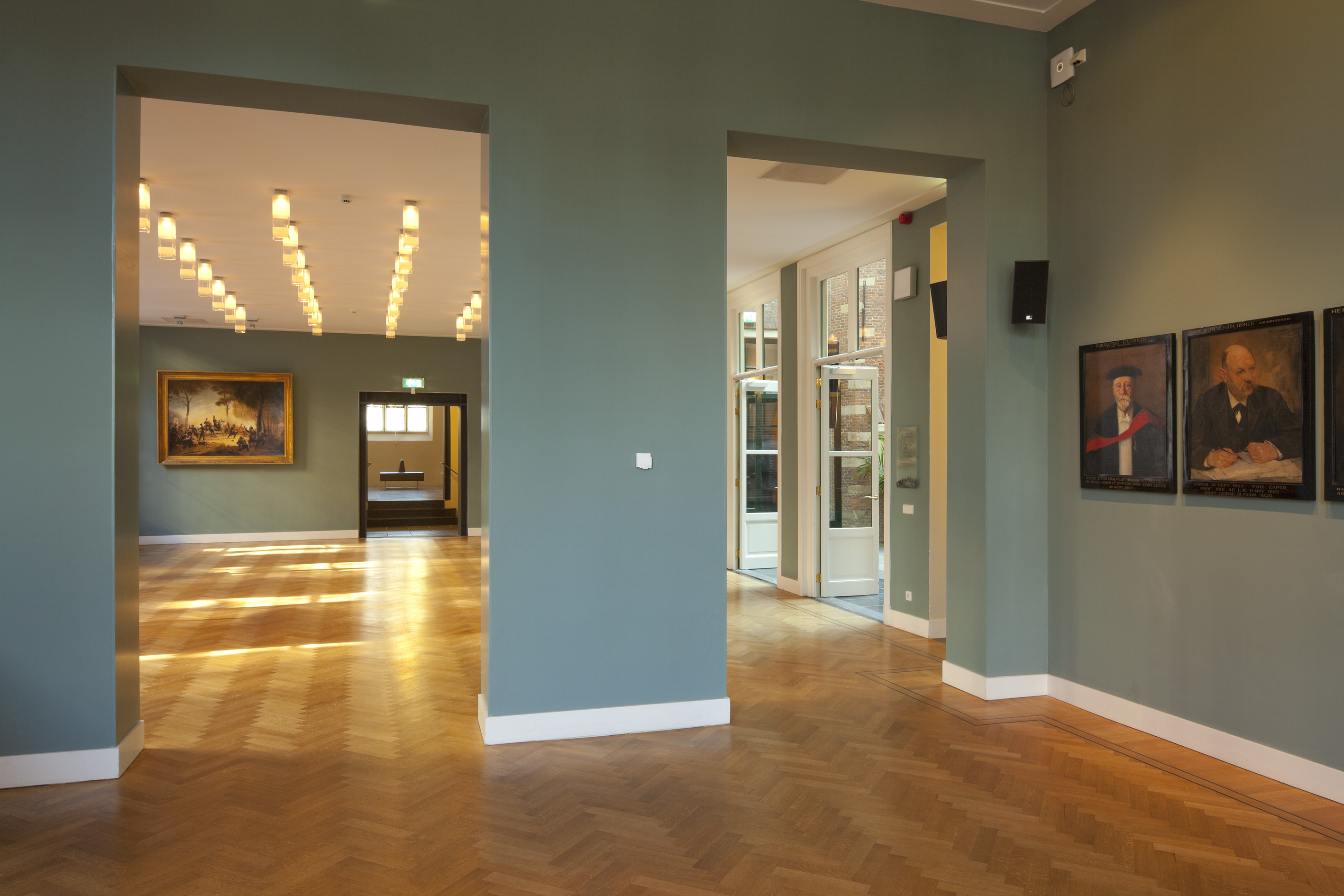 Na uitgebreid kleurhistorisch onderzoek zijn alle ruimten en gevels teruggerestaureerd naar de situatie van voor 1878. Voor de overige ruimten is gekozen voor een palet van ‘oud-Hollandse kleuren’, die passen bij het monumentale karakter van het gebouw. De nieuwe ingrepen zijn zichtbaar eigentijds uitgevoerd en ook het nieuwe meubilair vormt een modern contrast met het bestaande historische gebouw. Oud en nieuw samen vormen een eenheid met allure, die recht doet aan het monument en aan de ambities van de Universiteit.