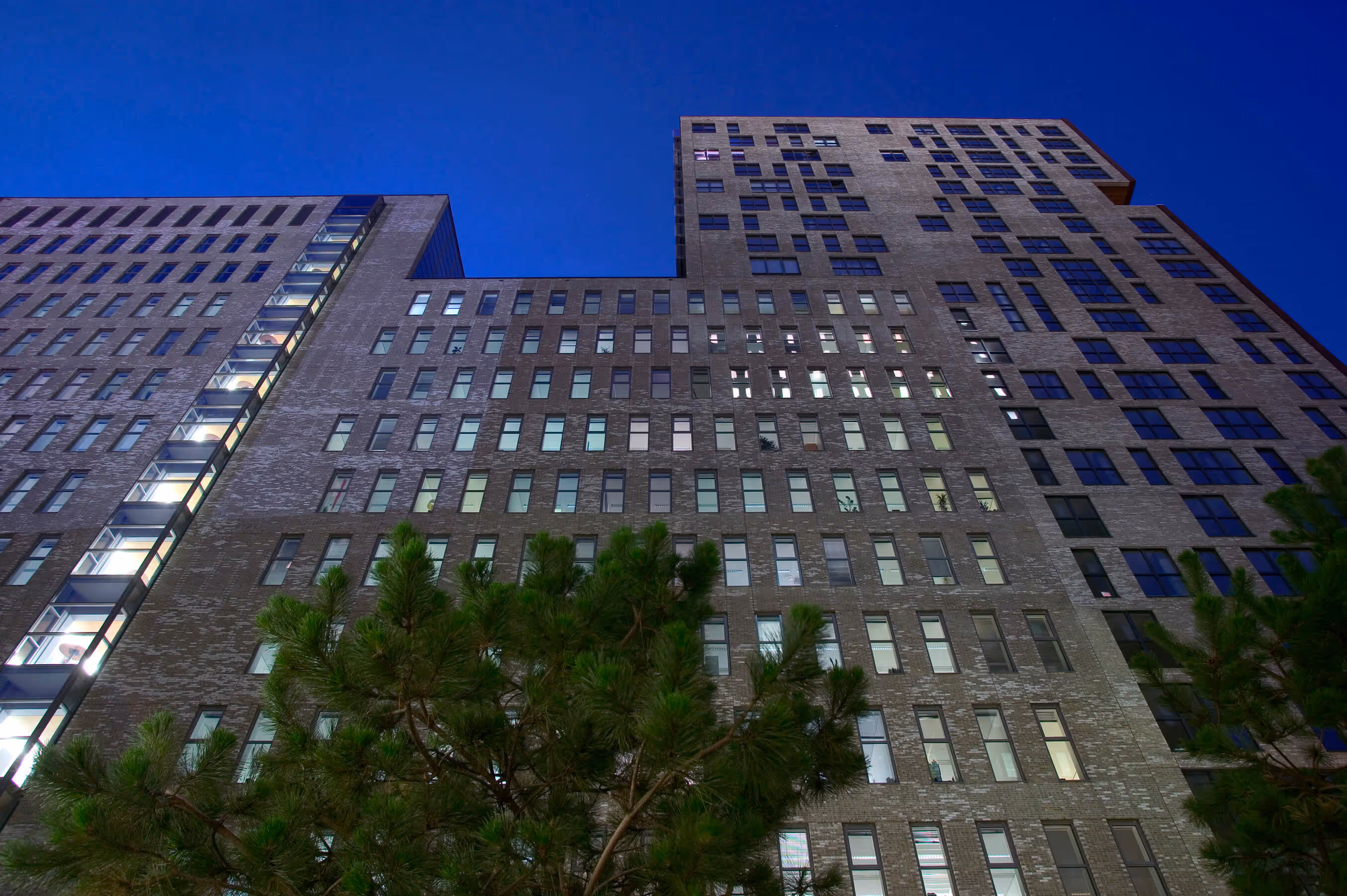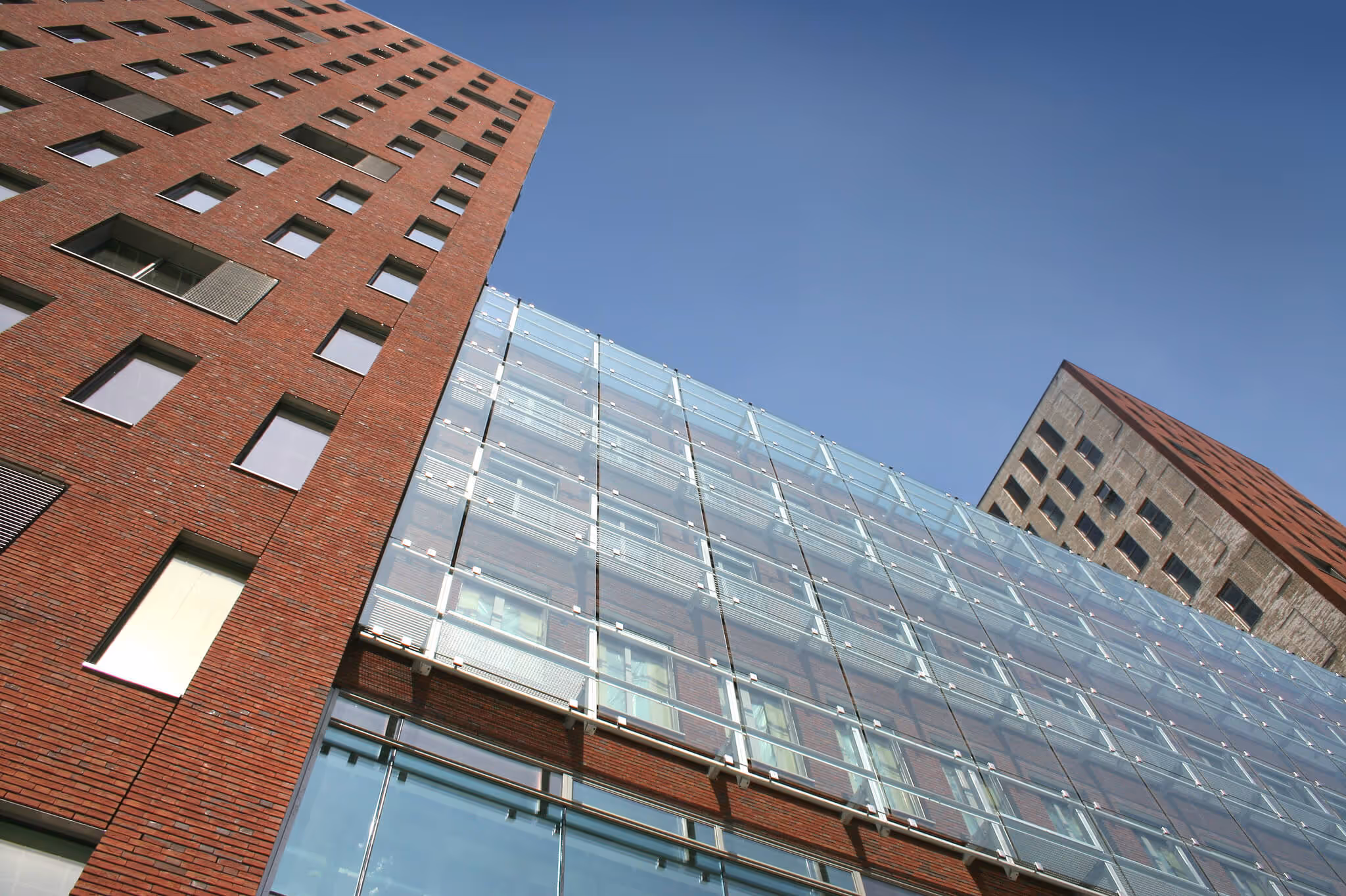 Om de stedelijkheid van het blok te benadrukken is het complex uitgevoerd in donkerrode baksteen, met verticale ramen. Aan de binnenzijde van het blok is een lichtkleurige steen toegepast. Het ensemble heeft zo het stoere stedelijke karakter van baksteengebouwen uit de eerste helft van de vorige eeuw, een sfeer die past bij Den Haag.