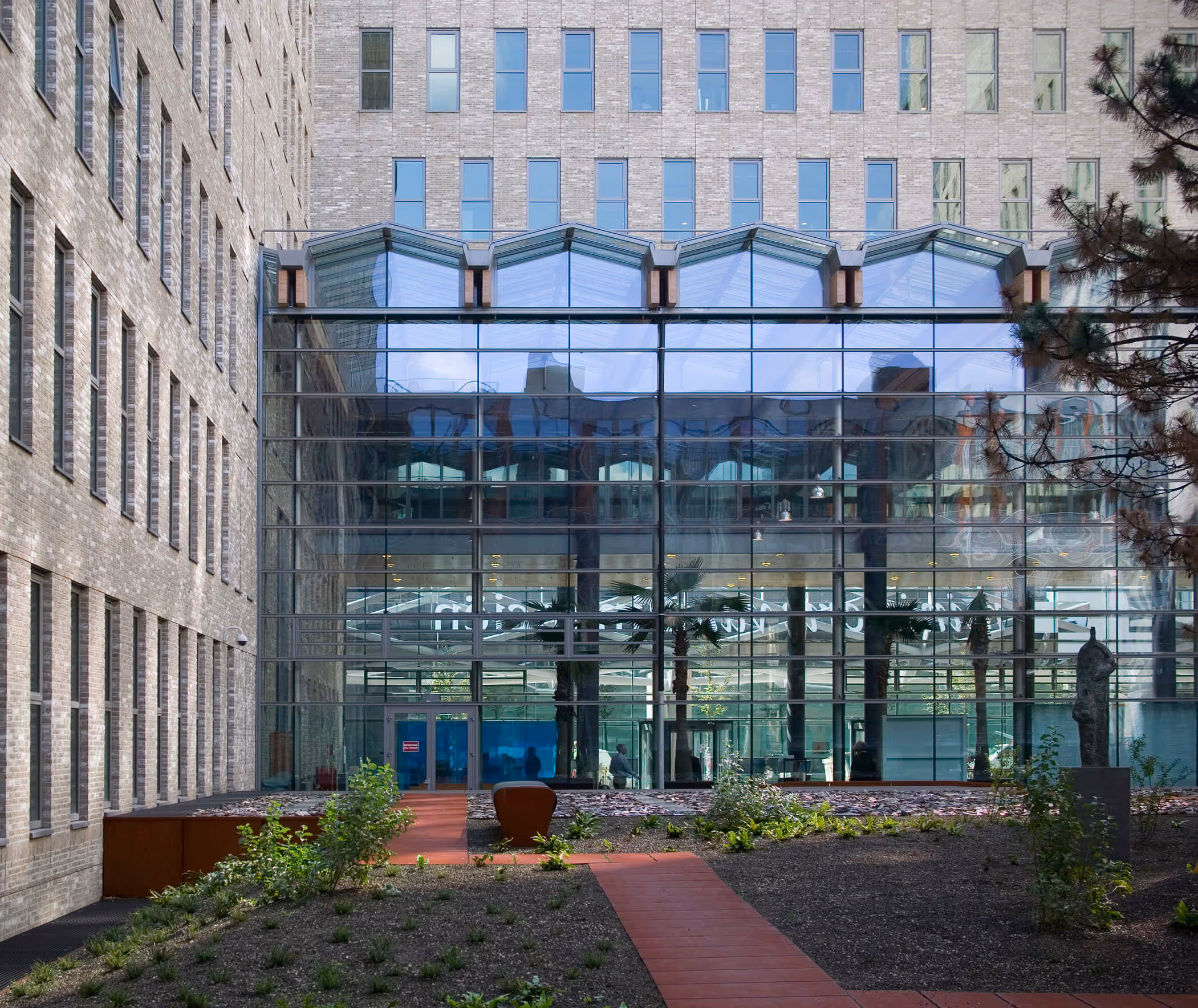 Bij elke herontwikkeling kijkt atelier PRO eerst goed naar al aanwezige kwaliteiten. Op basis daarvan kozen we ervoor om ons oorspronkelijke ontwerp op een aantal punten aan te passen. Zo heeft het WTC nu één centrale entree, en daarmee een duidelijke en zichtbare centrale ingang. Alle bezoekers komen binnen via het WTC Plaza – één van de corporate gardens, die vergroot is en is heringericht. In en om deze ruimte bevinden zich nu horeca, winkels en een sportschool, functies die ook goed zichtbaar zijn vanaf het straatniveau. De interne routing en bewegwijzering zijn verbeterd, en ruimtes beter met elkaar verbonden. Ook het interieur, dat door de jaren heen verrommeld was, kreeg een make-over. Het nieuwe Plaza zorgt voor een betere herkenbaarheid en bereikbaarheid van het WTC, iets waar ook het Beatrixkwartier als geheel van profiteert.