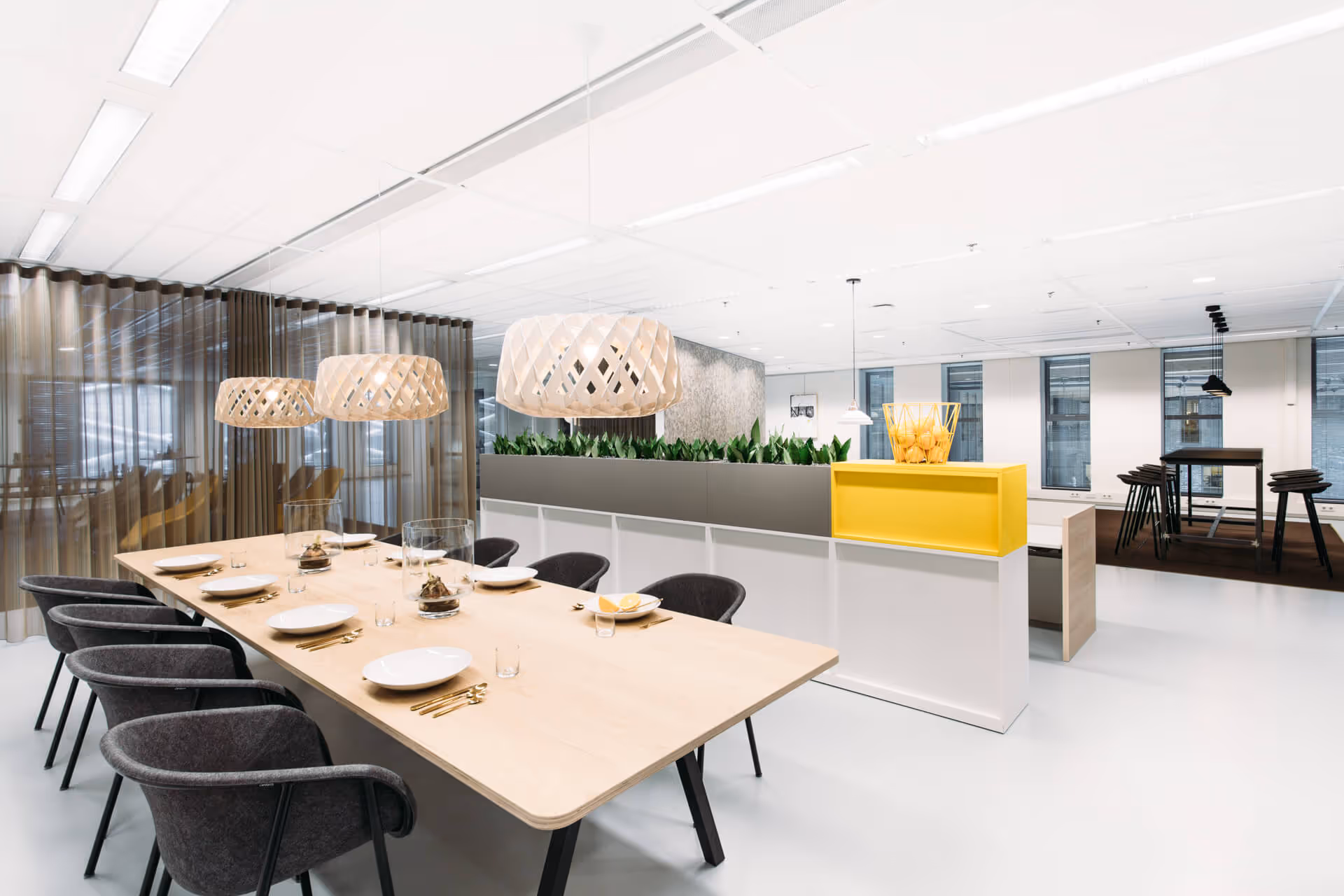 Om ook de verhuurbare verdiepingen van het WTC aantrekkelijker te maken ontwierp atelier PRO een modelverdieping in Toren C. Bij de transformatie hoorde de bouwkundige vernieuwing van een complete verdieping, maar ook een volledig nieuwe inrichting, tot op het kleinste accessoire. Om de ruimtelijke kwaliteit zo goed mogelijk in beeld te brengen, hebben we de indeling afgestemd op de meest heldere logistiek, de beste oriëntatie en de mooiste lichtinval. Vervolgens hebben we de ruimte ingedeeld in diverse werk- en ontmoetingsplekken, in lijn met Het Nieuwe Werken, en vormgegeven in een frisse, Scandinavische stijl. En met succes: de opdrachtgever besloot om - totdat de verdieping was vergeven - hun laptop hier open te slaan, aan een van de nieuwe bureaus.